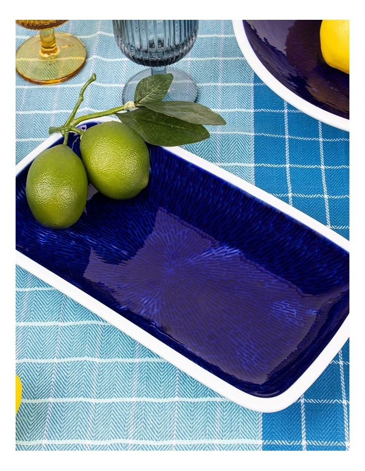 Inspired by the deep blues of the Mediterranean ocean, our Zoe Serveware range will be a striking addition to any table setting. With its clean white exterior and vibrant blue reactive glaze these pieces are sure to add some vibrancy to any home. Designed for sharing, this range is both dishwasher and oven safe.