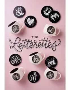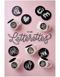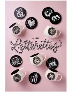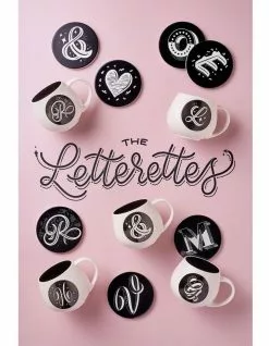 Maxwell & Williams The Letterettes Ceramic 10.5cm Heart Gift Boxed Round Coaster Black